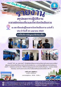 เจ้าหน้าที่ TAC และ อสทก.รุ่นที่ 1 ได้ปฎิบัติหน้าที่บูรณาการร่วมกันในการอำนวยความสะดวกให้แก่ผู้โดยสาร/นักท่องเที่ยวที่เดินทางเข้ามาในจังหวัดเชียงราย ณ สถานีขนส่งผู้โดยสารจังหวัดเชียงราย แห่งที่ 1 โดยในช่วงเวลาดังกล่าว ได้ให้บริการข้อมูลจุดบริการจำหน่ายตั๋วรถโดยสาร, การเดินทางไปยังวัดร่องขุ่น และอำนวยความสะดวกในการเชื่อมต่อสัญญานอินเตอร์เน็ต (Wi-Fi)