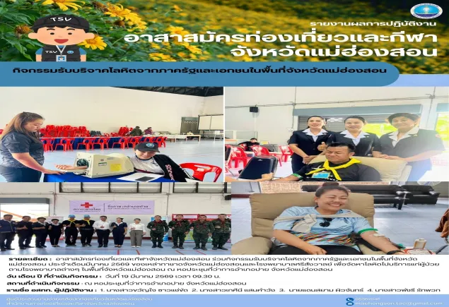 อาสาสมัคร​ท่องเที่ยว​และ​กีฬา​จังหวัด​แม่ฮ่องสอน​ ร่วมกิจกรรมรับบริจาคโลหิตจากภาครัฐและเอก......